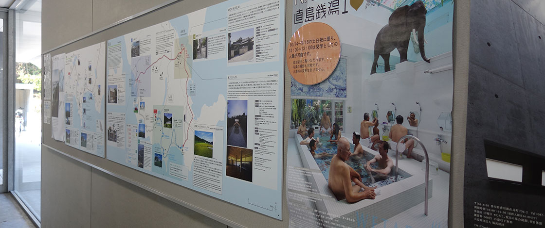 안도 타다오의 활동 및 나오시마 역사를 전하는 사진, 스케치, 모형 뿐 아니라